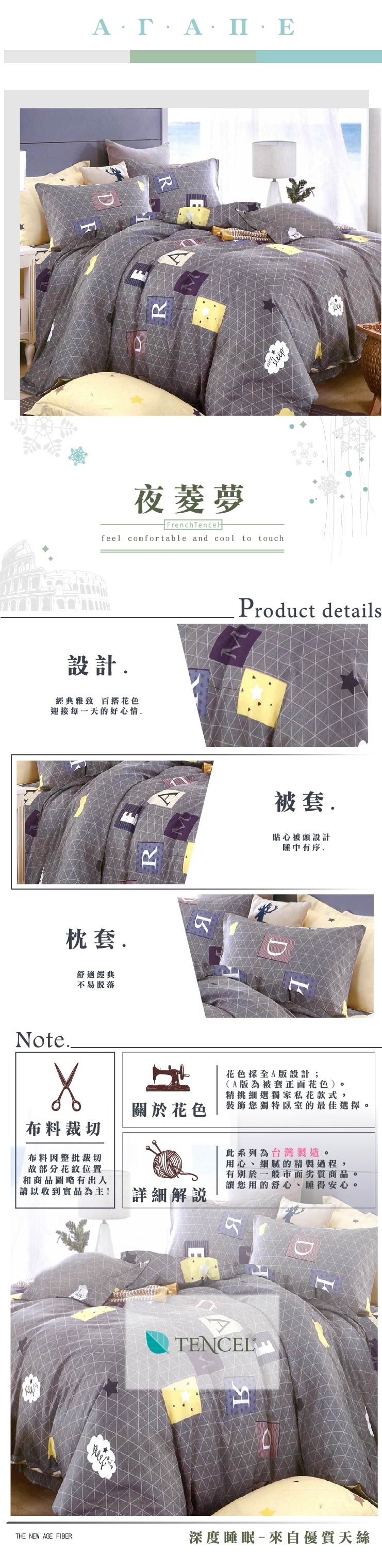 2019寢具家飾推薦 AGAPE亞加?貝 -夜菱夢 MIT台製吸濕排汗法式天絲 雙人加大6尺四件式兩用被套床包組/床包加高35公分